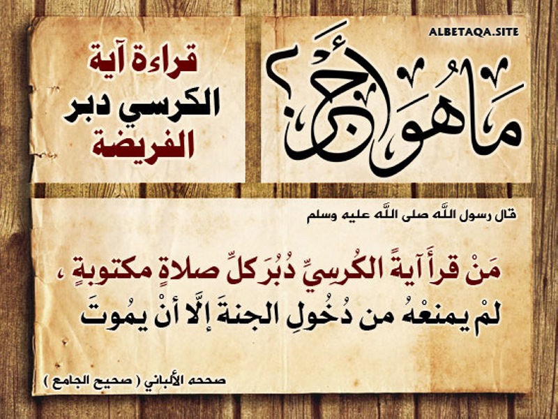 ما هو أجر قراءة آية الكرسي دبر الفريضة موقع البطاقة الدعوي